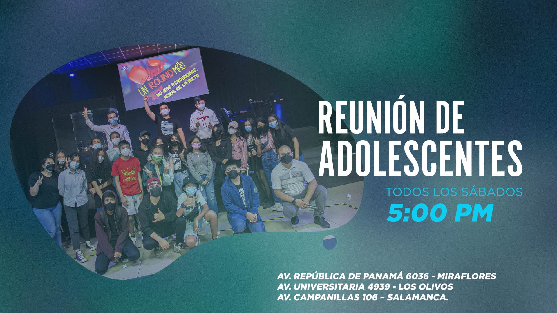 Reunión de adolescentes desde las 05:00 p.m. y Zona Joven 07:30 p.m.